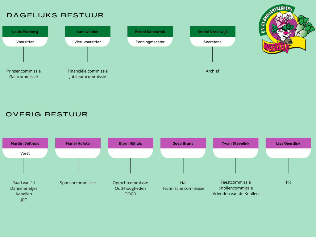 (aanspreekpunt Feestcommissie, Knollencommissie, Vrienden van de Knollen)